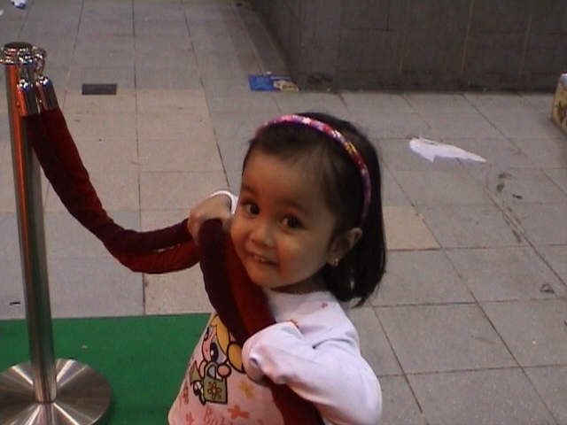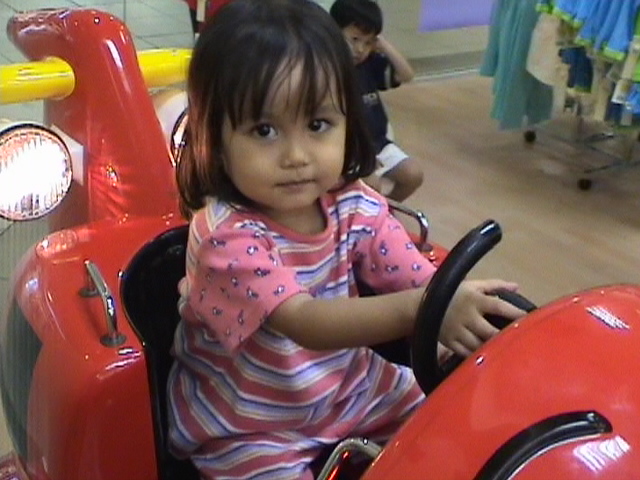 Riding a kiddie ride at Centrepoint, Orchard Road, Singapore.