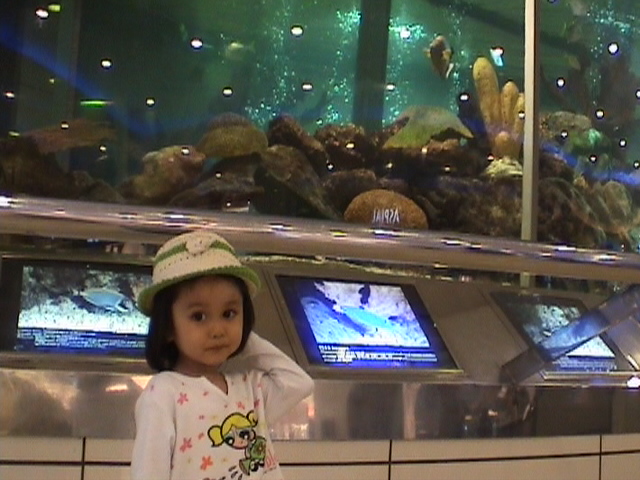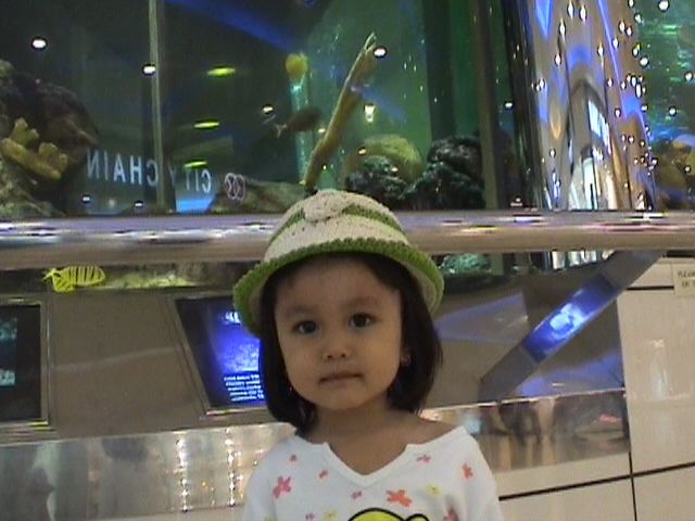 At the same place in front of the aquarium at the basement of Wisma Atria, Orchard Road, Singapore.