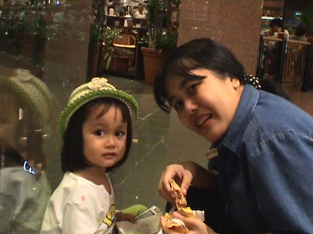 With my mother, having our D'Crepes at Takashimaya.