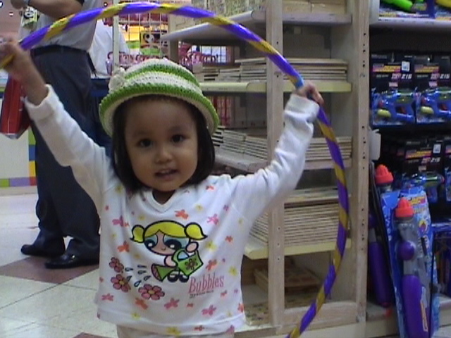 Playing a hula hoop at Takashimaya Shopping Center, Singapore.