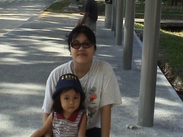 With my mother, waiting for a bus at a bus stop along AYE (Ayer Rajah Expressway), Singapore.