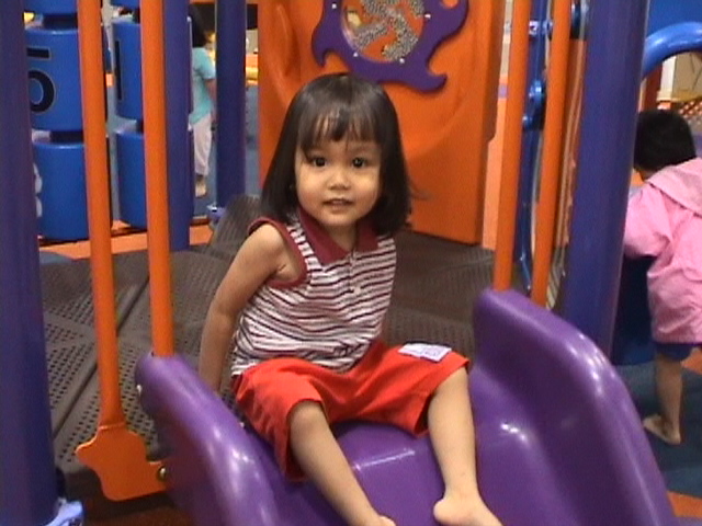Playing at the playground inside IMM Building, Jurong East, Singapore.