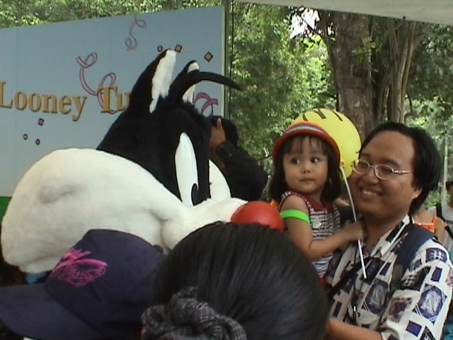 With my father with Sylvester, a character from the Looney Tunes, at Singapore Zoological Garden, Mandai Road, Singapore.