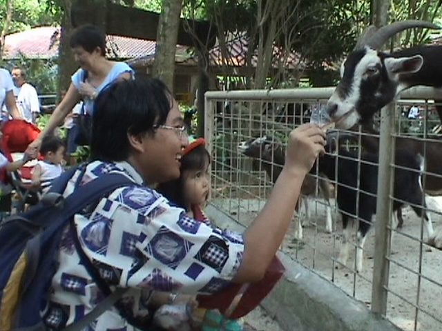 With my father, feeding a goat at Singapore Zoological Garden.