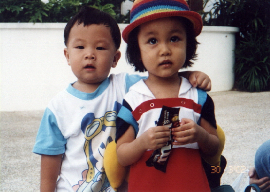 With my mother, my little brother and my family's maid at Changi airport, Singapore, after disembarking from the plane, on the travellator towards immigration.